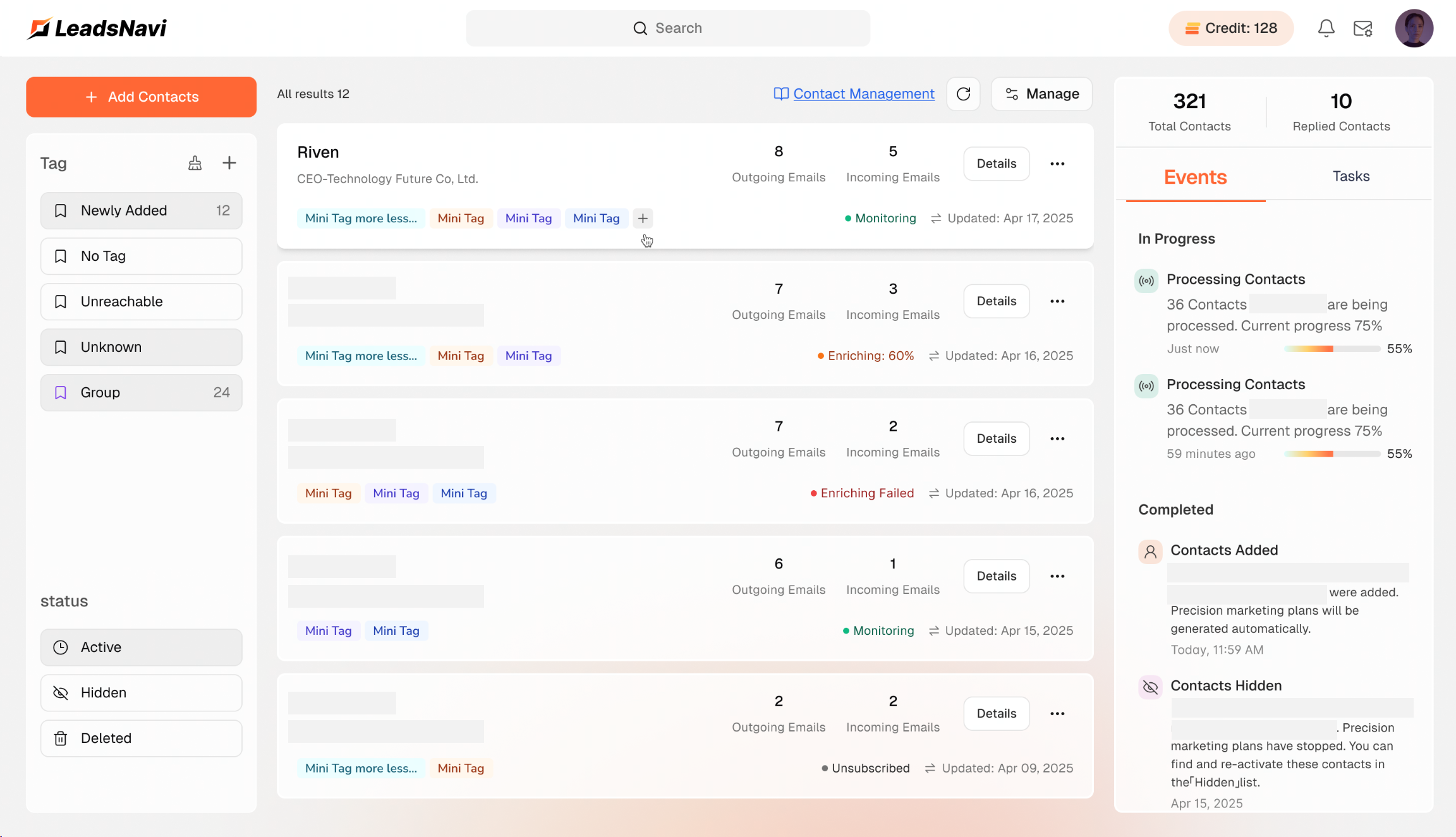 💡 Tip: Tags allow you to quickly filter, segment, and locate specific groups of contacts — making your outreach more focused and efficient.