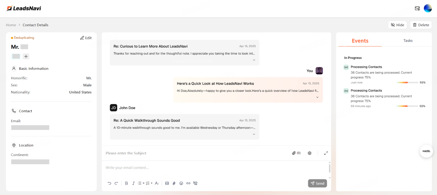 Leadsnavi is a powerful lead management platform designed for sales, marketing, and outreach teams.Here, you can easily complete the full workflow—from adding contacts and connecting email accounts to tracking automated tasks, helping you acquire leads efficiently, manage relationships, and monitor AI-driven actions in real time.