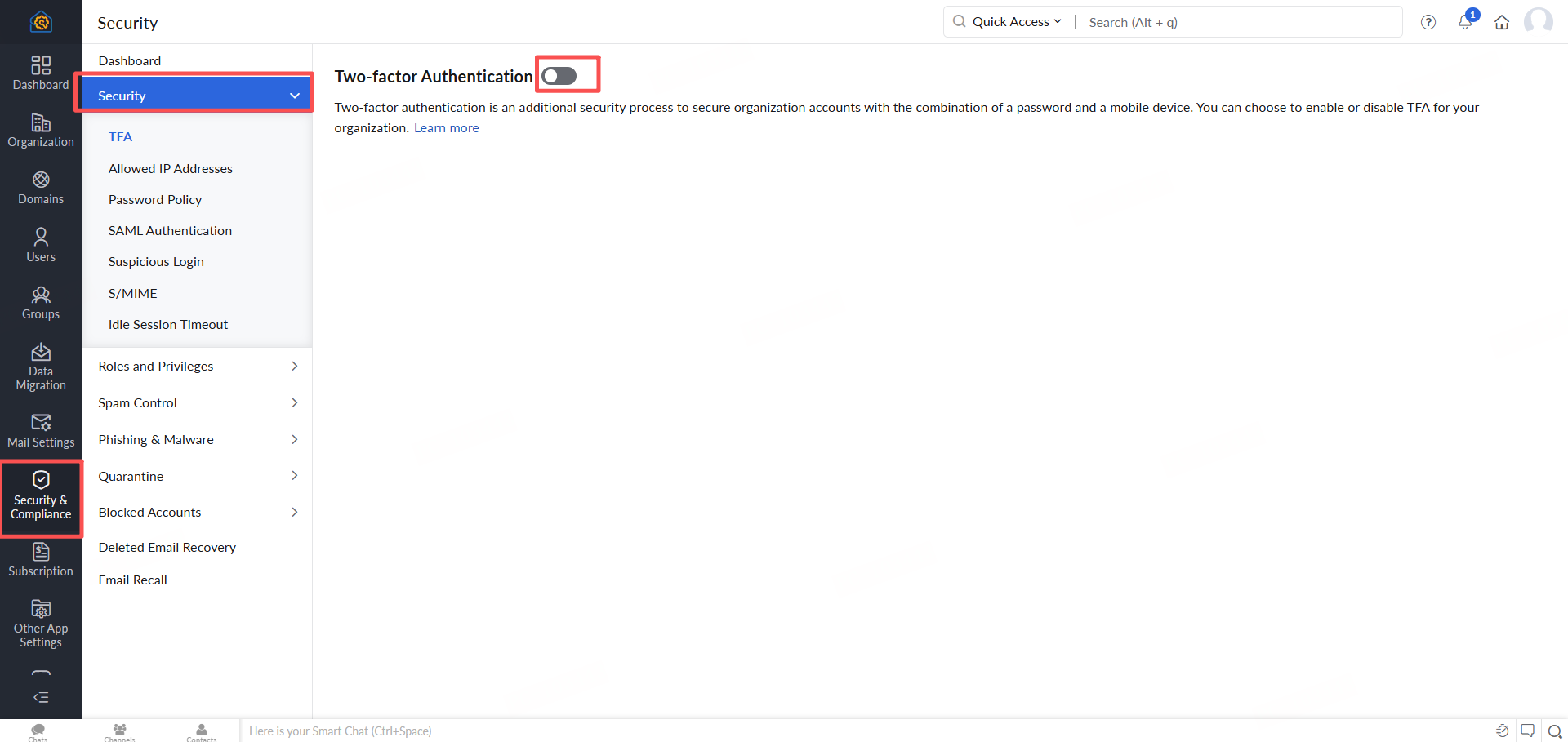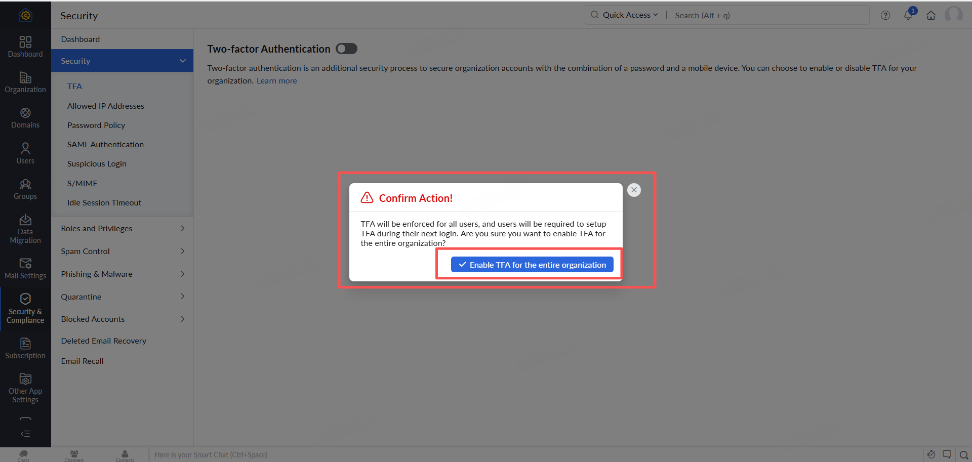 - Enable TFA for your organization.