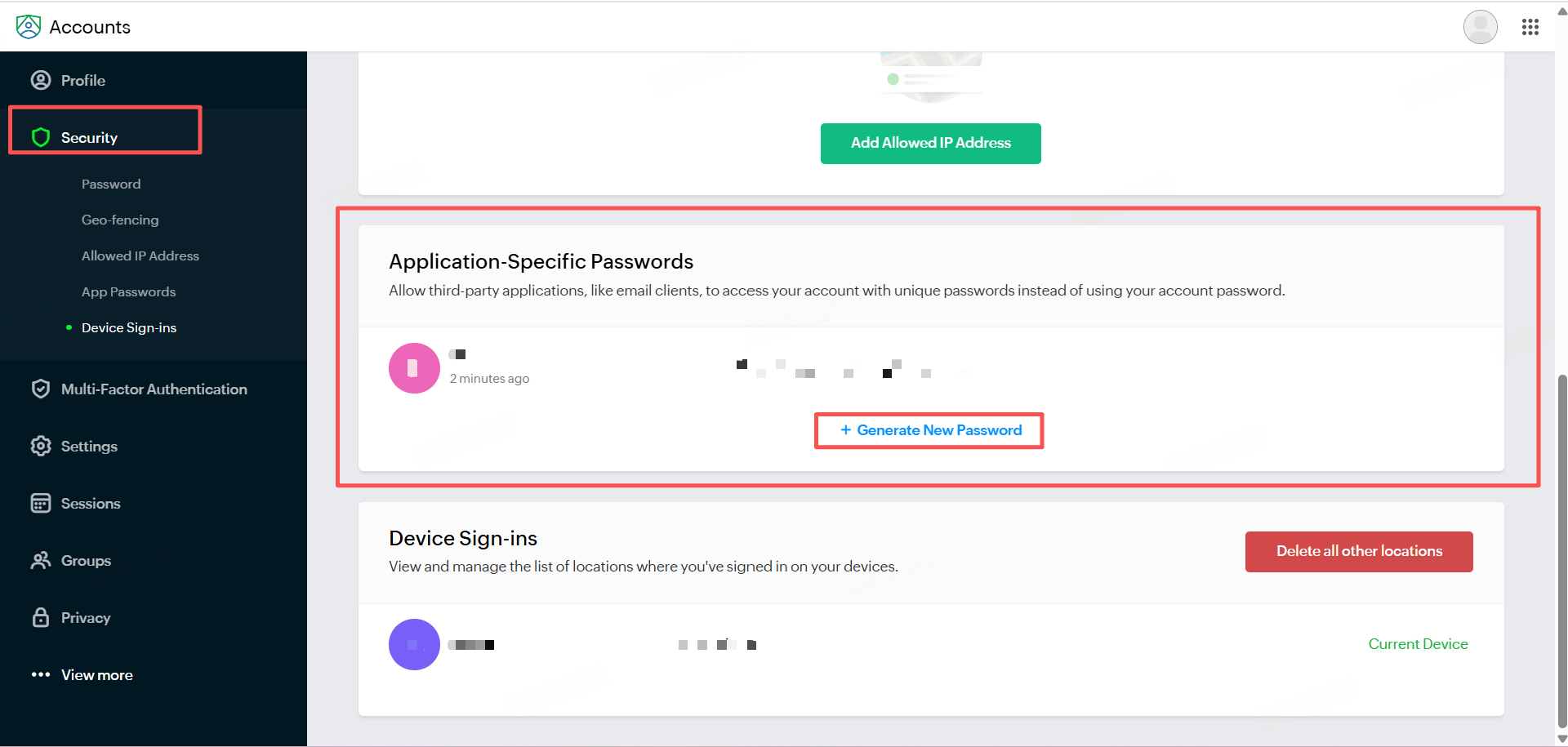 - Click Security, then click Application Passwords.